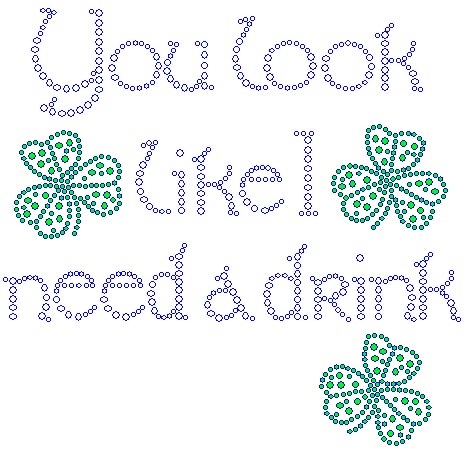 You look like I need a drink Rhinestone Transfer Clear and Emerald Rhinestones