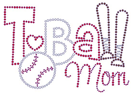 T Ball Mom with Bats rhinestone transfer Crystal, Siam and Smoked Topaz Rhinestones